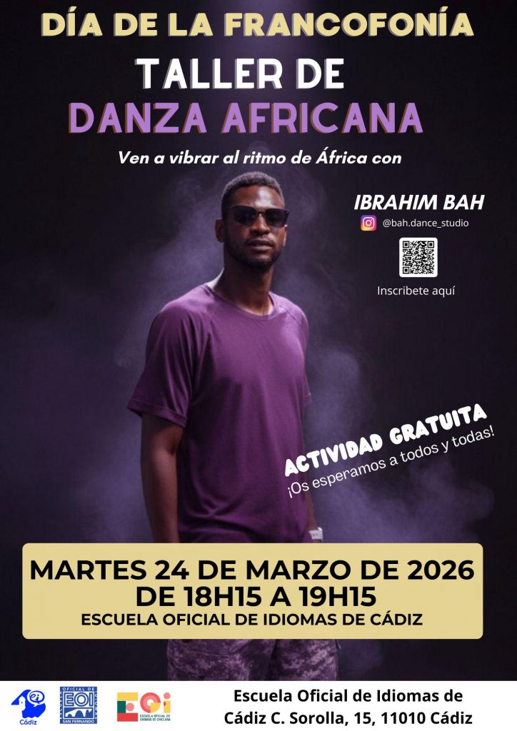 El Departamento de Francés de la EOI de Cádiz en colaboración con las Escuelas de Idiomas de San Fernando y Chiclana ofrecen una tarde de actividades muy interesantes para celebrar el día de la Francofonía:
