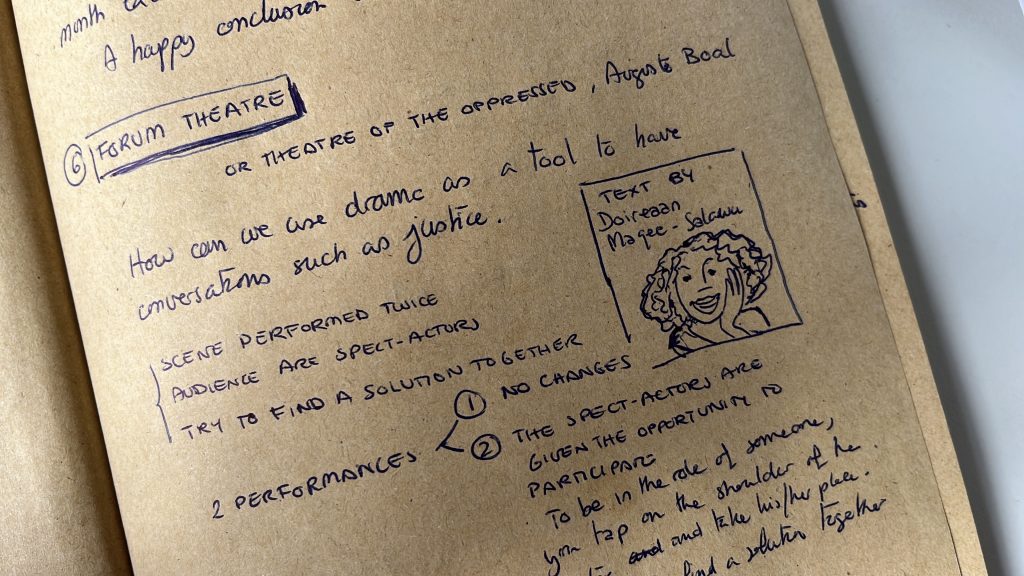 Gracias a esta formación pude aprender más sobre un tipo de metodología que me fascina: usar la dramaturgia como herramienta para enseñar una lengua. En este curso, impartido en inglés, no sólo aprendimos técnicas para romper el hielo, trabajar en equipo, aprender que el error es parte del aprendizaje, ser más flexibles a la hora de planificar nuestras actividades, sino que también creamos pequeños proyectos teatrales a partir de un objeto, una imagen o un texto para trabajar la entonación, la escucha activa, la escritura creativa, el monólogo y el diálogo. Uno de estos ejemplos es el FORUM THEATRE o teatro de los oprimidos, por Auguste Boal, donde aprendimos cómo podemos utilizar el teatro como herramienta para tener conversaciones sobre, por ejemplo, la justicia. Una actividad muy interesante para los niveles avanzados.